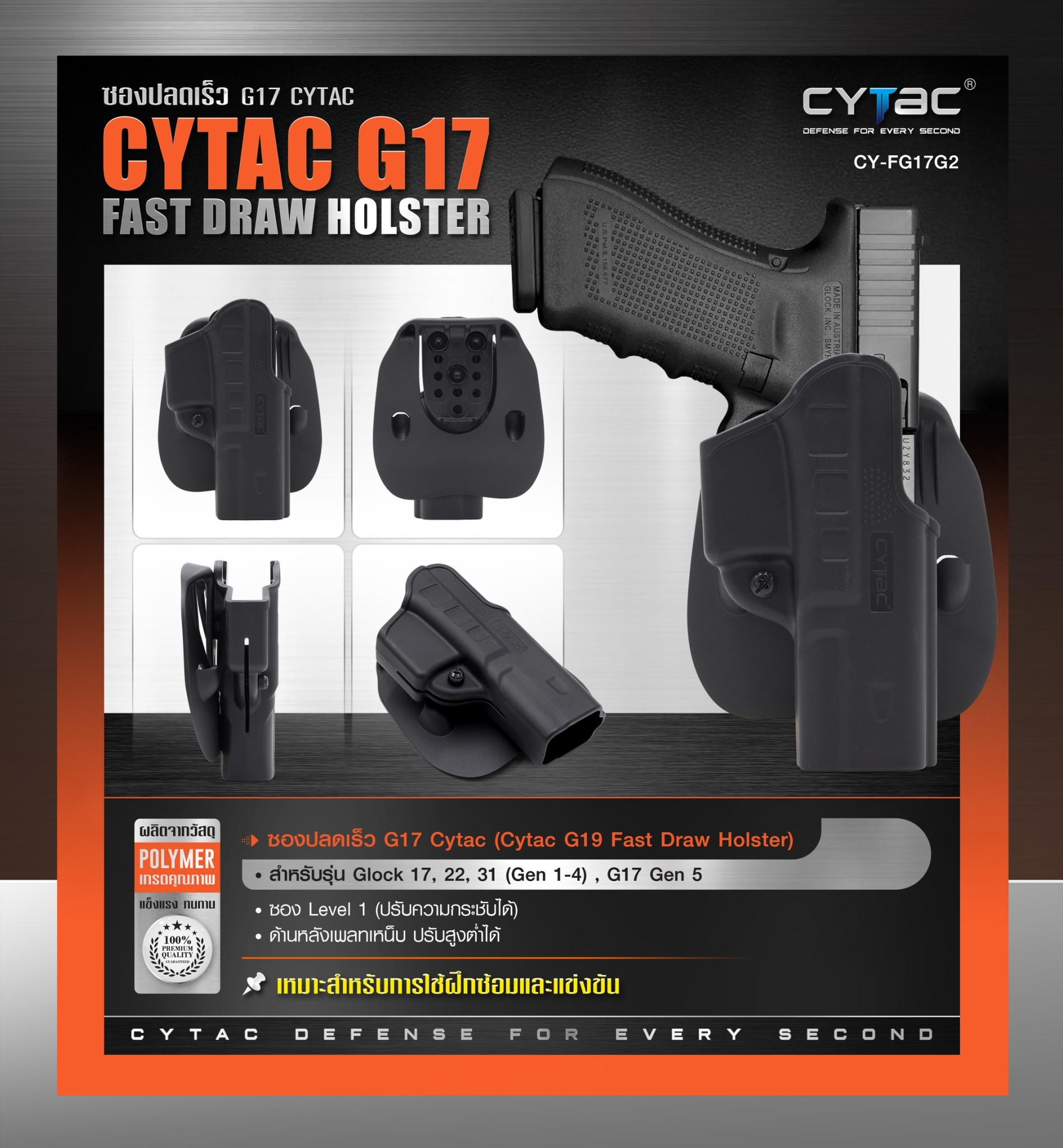 ![New.ซองปลดเร็ว G17 Cytac ( Cytac G17 Fast Draw Holster ) [ CY-FG17G2 ] 🍁 ผลิตจาก Polymer คุณภาพดี 🍁 สำหรับรุ่น Glock 17, 22, 31 (Gen 1-4) , G17 Gen 5 🍁 ซอง Level 1 ( ปรับความกระชับได้ ) 🍁 ด้านหลังเพลทเหน็บ ปรับสูงต่ำได้](https://dc.lnwfile.com/_/dc/_raw/3z/bc/5g.jpg)