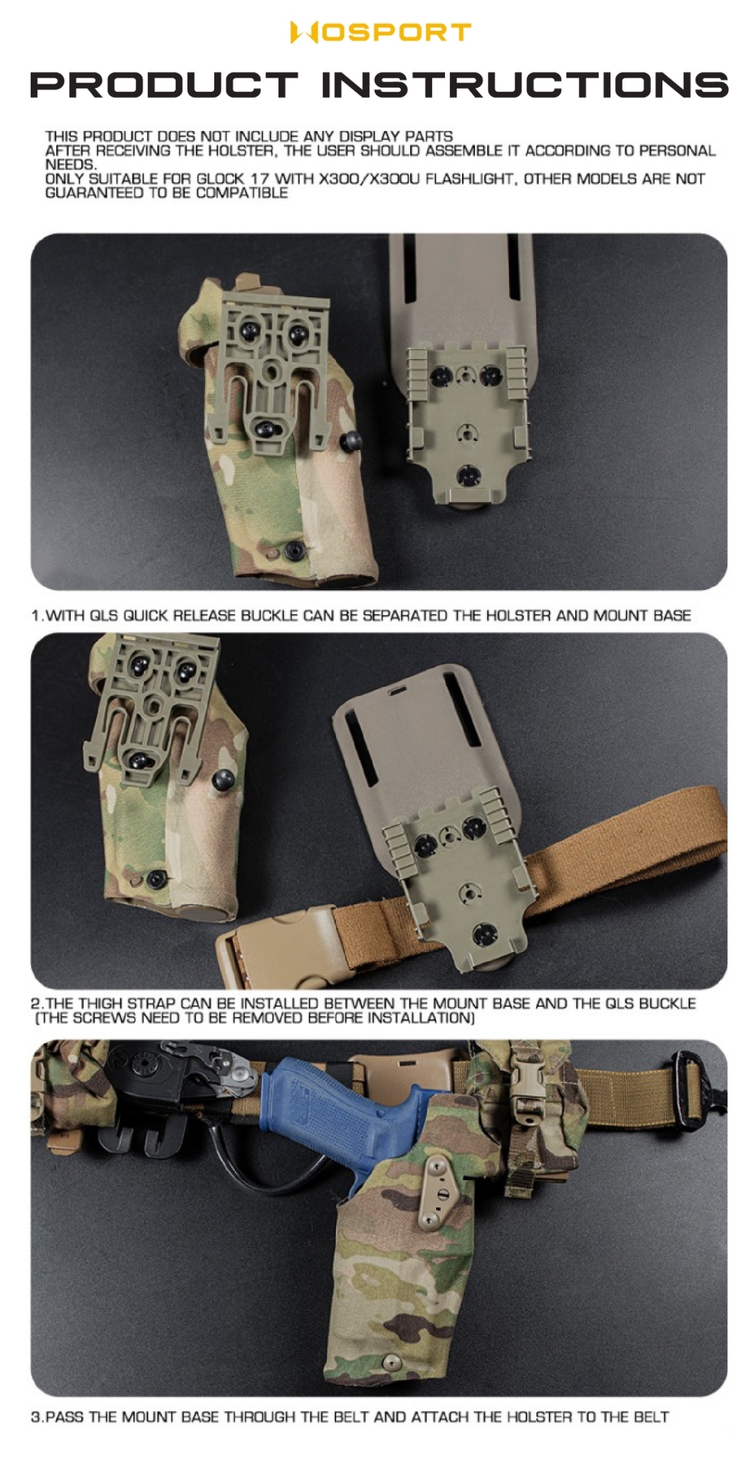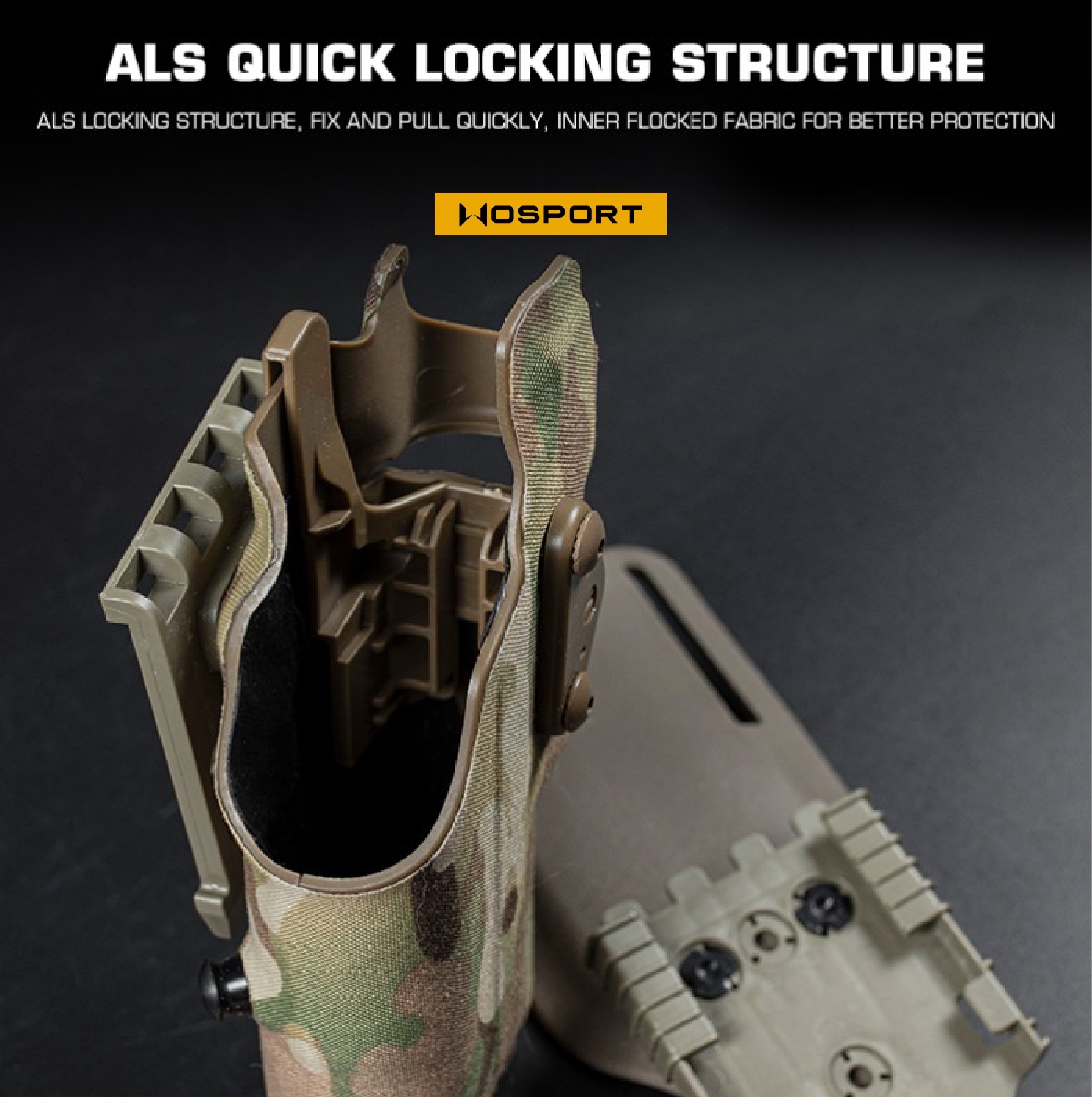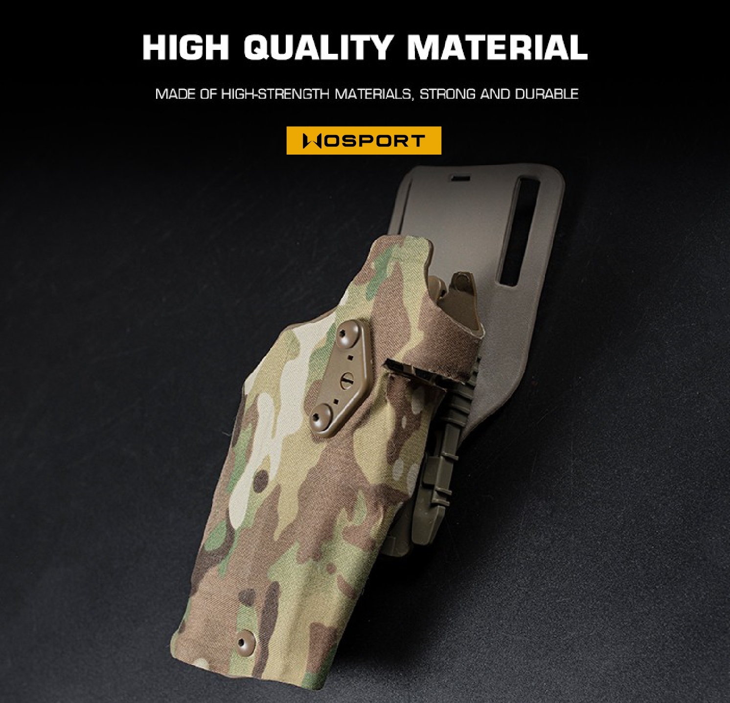 New. ซองปืน 6354DO ( WOSPORT ) 6354DO Holster [ GB-74 ] ⚡ซองผลิตจากวัสดุ Nylon เกรดคุณภาพ ⚡ปลดล็อคนิ้วโป้ง ใข้งานง่าย ปลอดภัย ⚡ใช้งานได้กับ G17/G19 ติดดอทและไฟฉาย X300, APL-C, TLR-7/8 เป็นต้น ⚡ด้านในซองบุผ้ากำมะหยี่ ลดรอย &