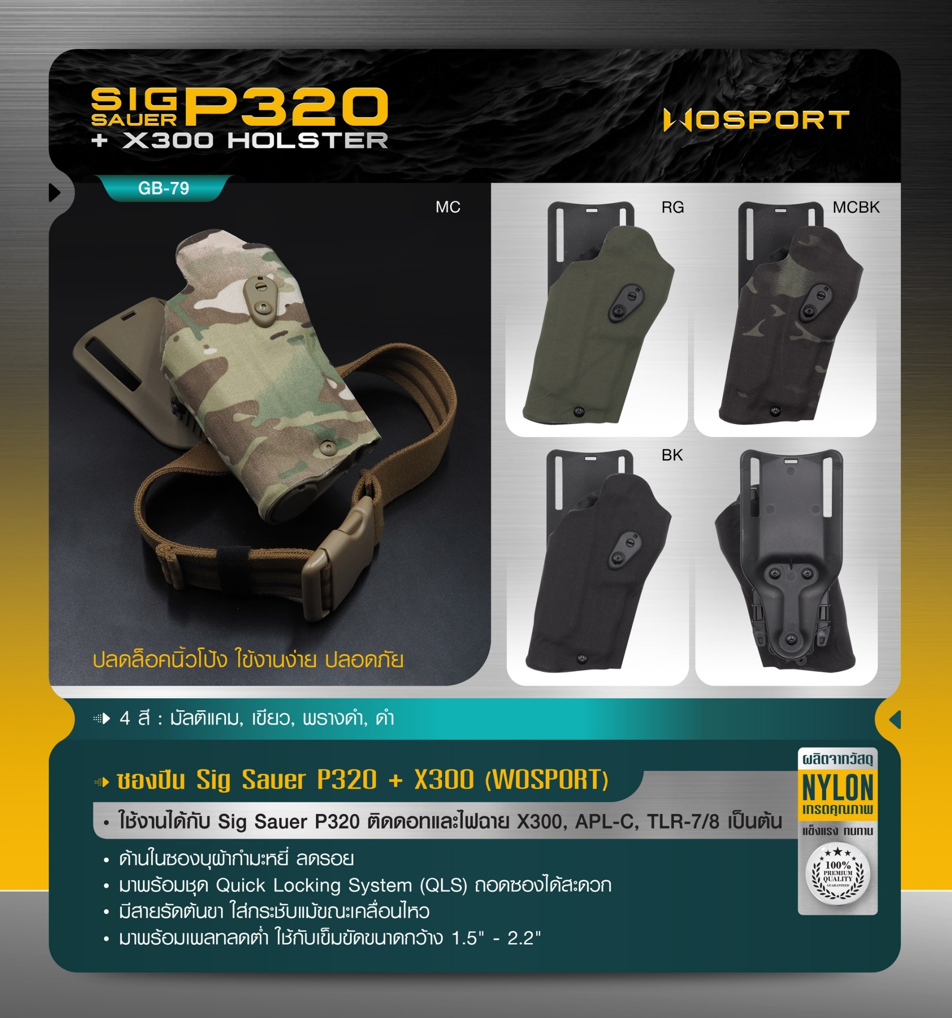 ![New. ซองปืน Sig Sauer P320 + X300 ( WOSPORT ) Sig Sauer P320 + X300 Holster [ GB-79 ] ⚡ซองผลิตจากวัสดุ Nylon เกรดคุณภาพ ⚡ปลดล็อคนิ้วโป้ง ใข้งานง่าย ปลอดภัย ⚡ใช้งานได้กับ Sig Sauer P320 ติดดอทและไฟฉาย X300, APL-C, TLR-7/8 เป็นต้น &](https://dc.lnwfile.com/_/dc/_raw/a6/hg/qi.jpg)