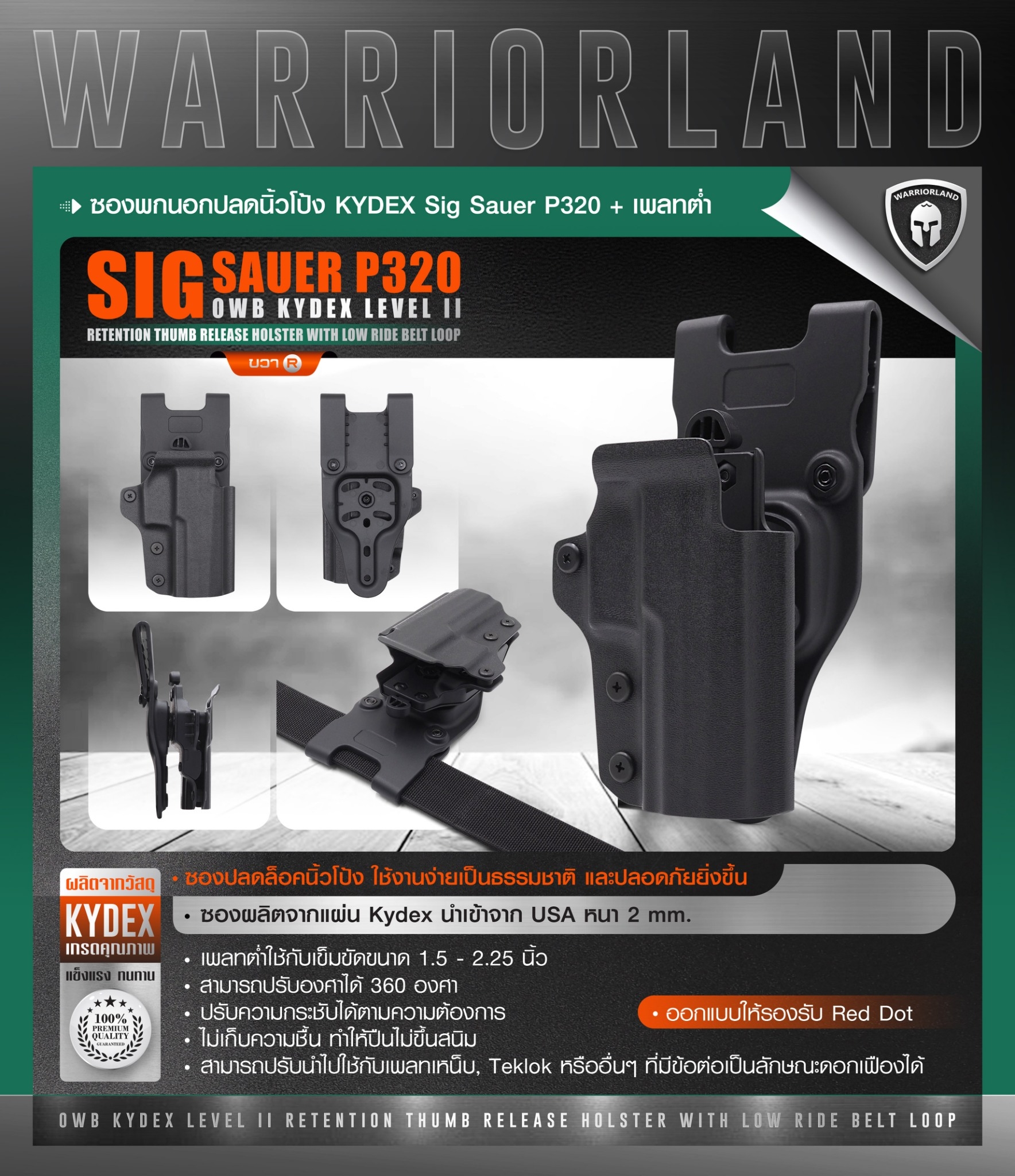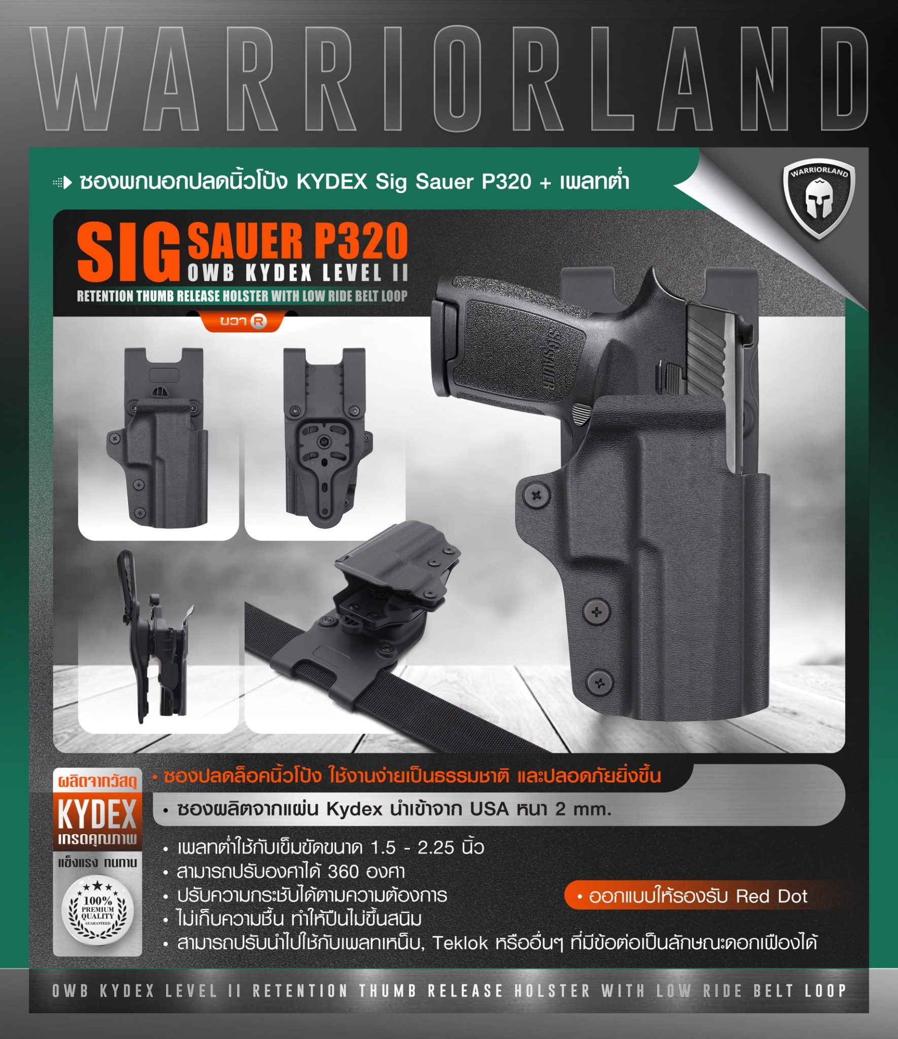![New. 🎯 ซองพกนอกปลดนิ้วโป้ง KYDEX + เพลทต่ำ Warriorland [ OWB Kydex Level II Retention Thumb Release Holster with Low ride belt loop ] 🔱 Sig Sauer P320 🍁 ซองปลดล็อคนิ้วโป้ง ใช้งานง่ายเป็นธรรมชาติ และปลอดภัยยิ่งขึ้น 🍁 ซองผลิต](https://dc.lnwfile.com/_/dc/_raw/zz/q5/8e.jpg)