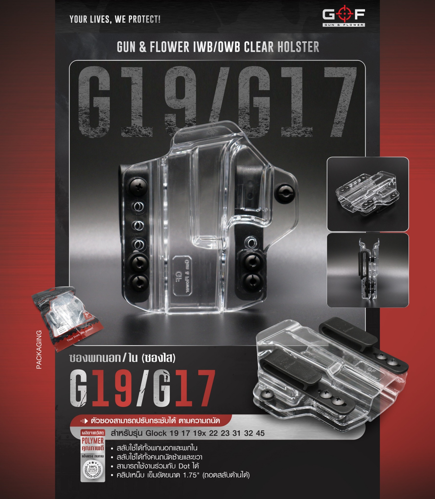 ![New. ซองพกนอก/ใน G19/G17 ( ซองใส ) [ Gun & Flower ] 🔹 ผลิตจาก Polymer เกรดคุณภาพ 🔹 สำหรับรุ่น Glock 19 17 19x 22 23 31 32 45 🔹 สลับใช้ได้ทั้งพกนอกและพกใน 🔹 สลับใช้ได้ทั้งคนถนัดซ้ายและขวา 🔹 สามารถใช้งานร่วมกับ Dot ได](https://dc.lnwfile.com/_/dc/_raw/f9/23/gh.jpg)