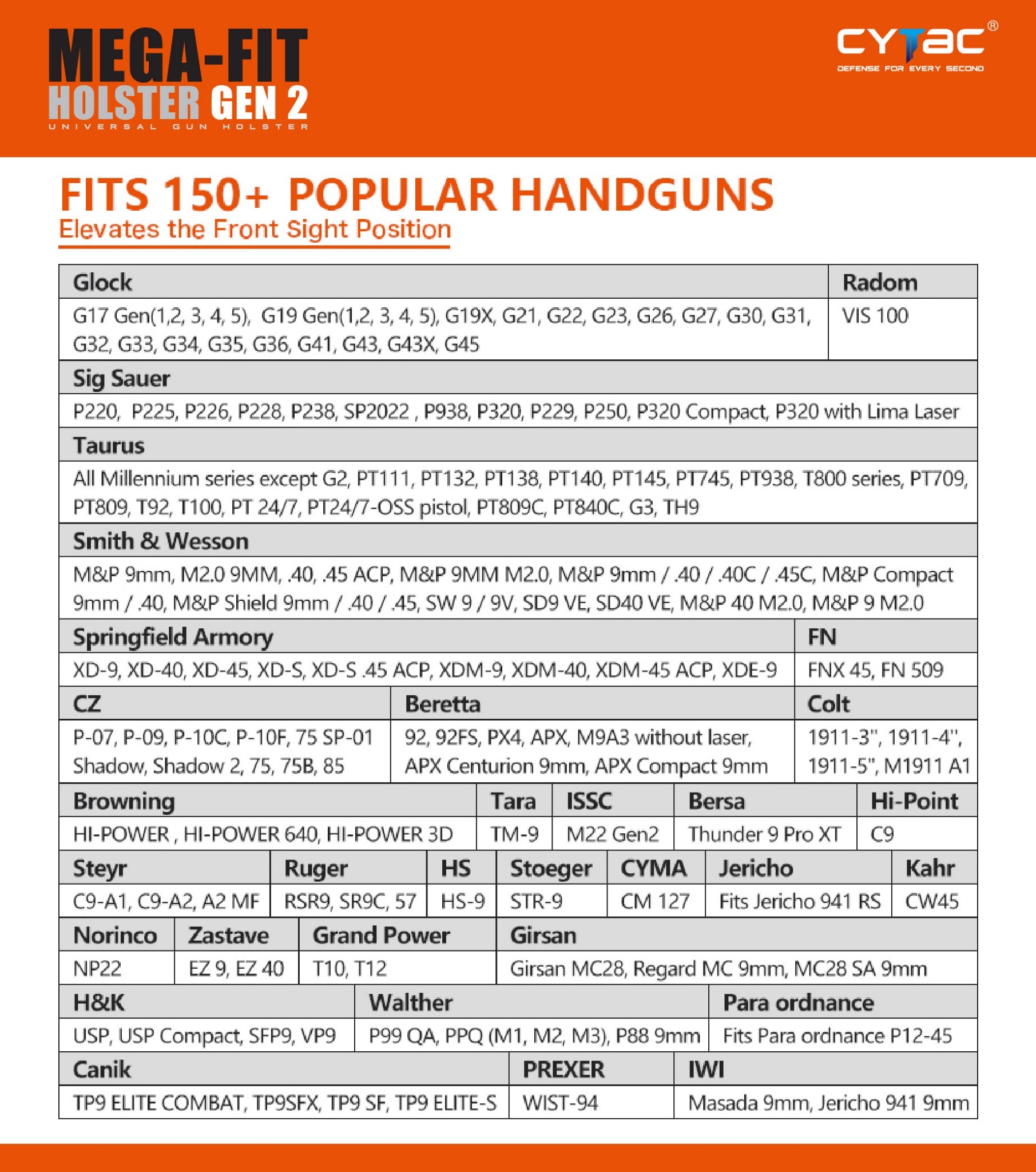 ![New. Cytac Mega-Fit Holster Gen2 [ CY-UHFSG2 ] ⚡️ซองปืนที่ออกแบบมาให้สามารถใช้งานได้หลากหลายรุ่น (ตามตารางแนบ) เช่น Glock , Sig Sauer, CZ , Beretta, Ruger , S&W, Walther, Colt, Taurus และอื่นๆ ⚡️ผลิตจากวัสดุ Polymer เกรดคุณภาพ ⚡️ซองถู](https://dc.lnwfile.com/_/dc/_raw/3a/st/n2.jpg)