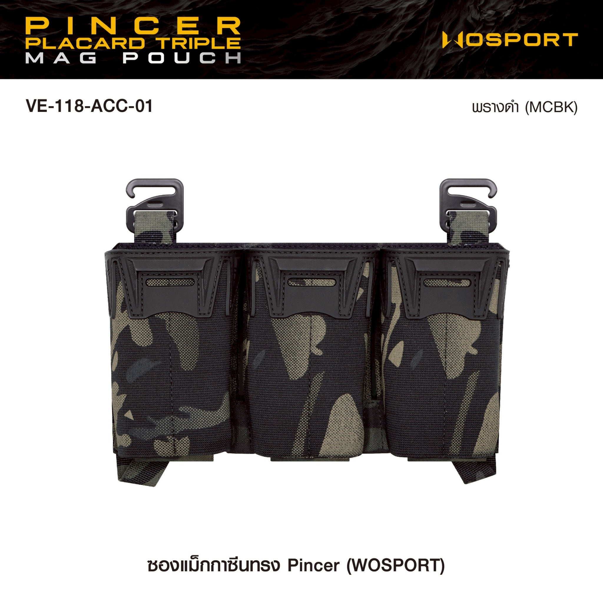 ![New. ซองแม็กกาซีนทรง Pincer (WOSPORT) [VE-118-ACC-01] สีพรางดำ Pincer Placard Triple Mag Pouch ♣ผลิตจากผ้า Cordura 500D + Elastic ♣ใช้ร่วมกับ JPC 2.0 , FCSK 2.0/3.0, FCPC, AVS, LV119, SLICKSTER ♣บรรจุ 5.56 Mag = 3 ช่อง ♣สามารถด](https://dc.lnwfile.com/_/dc/_raw/5r/v8/52.jpg)